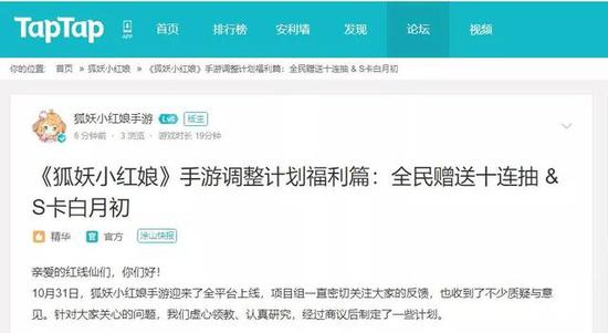 如项目组依据用户声音、外界反馈采取积极行动,于11月2日推出了面向所有玩家的赠送十连抽、S卡“红仙白月初”的福利。