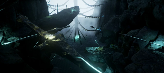 溯云对离忧先生来更为难啃的骨头并不在此,而是场景。灭世后的灵界是什么样的?那种归于寂灭之后的寒冷与悲戚该如何表现?《剑魄》场景美术风格偏于冷色调,即便部分场景用上了饱和度较高的色系,但给人的感觉还是偏于阴冷、晦暗。周遭都是残损的建筑、林立的怪石。