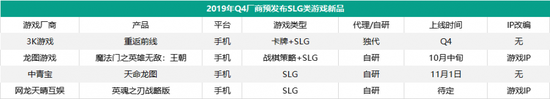 除了这些已经在市场上站稳脚跟的头部SLG产品,还有不少新品蓄势待发。在手游那点事此前统计的Q4厂商预发布新品中,就有多家厂商布局了SLG品类,比如中青宝的《天命龙图》、网龙天晴互娱的《英魂之刃战略版》,还有一些“SLG+”的融合类产品,比如3K游戏的《重返前线》。