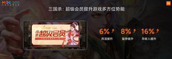 当然,会员也的确取得了一些不错的成绩。例如游卡的三国杀,这款游戏加入会员以后,我们通过活动联动,这款游戏的月活提升了6%,留存提升了8%,同时月收入提升了16%。