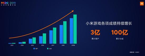 11月21日,小米公司MIDC开发者大会应用与游戏生态分论坛在北京召开,小米互联网二部副总经理、游戏业务负责人梁秋实在会上首次公开了小米游戏联运业务的运营数据:自2013年成立以来,小米游戏累计注册用户目前已经突破3亿,开发者累计分成已超过100亿元。