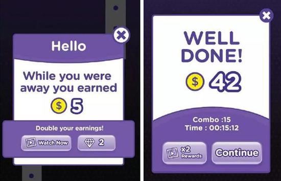 任务奖励翻倍常见于关卡制游戏,但玩家可能会因为完成了关卡,而选择性忽略这种广告形式。