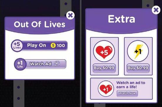 一些关卡制游戏会将观看视频广告作为立刻复活的条件,但是这种广告可能影响内购意愿,所以要对观看广告进行复活的次数加以限制。
