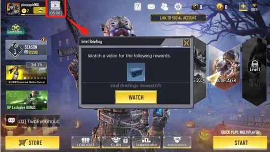 大DAU游戏还可以直接在主界面设置激励视频广告位,以提升用户点击广告的可能性,像前文提到的《使命召唤手游》就在主界面人物头像的右侧设置了激励视频广告位。