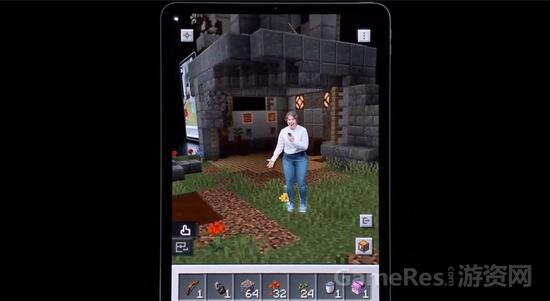 除了 AR 功能外,游戏中针对 iOS 版本还支援了 People Occlusion,该功能让使用者能将人物以真实大小直接放入《Minecraft Earth》的 3D 全像投影(Holography)中。玩家可以在创作物中走动,或观察朋友正在创造的过程,彷彿创作真实来到《我的世界》。另外,透过 Motion Capture 动态捕捉,玩家还能与游戏中的角色连动。该功能将会针对玩家现实中的手势,触发游戏中的预设关联动画。