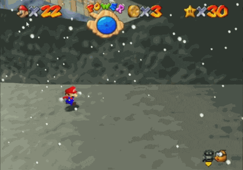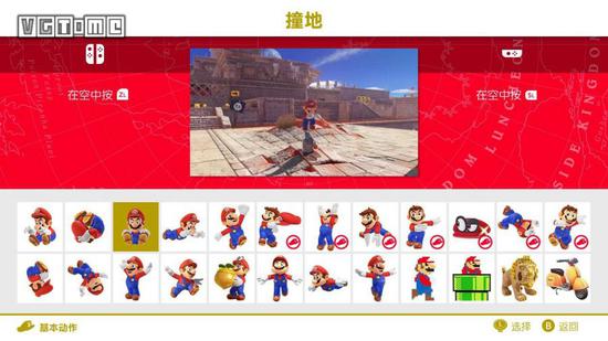 3D 化之后,马力欧的动作比 2D 时更多样化了,从简单的走、跑、跳、蹲,到匍匐、游泳、攀爬等动作,再到二段跳、三段跳以及蹬墙跳等特殊动作都能实现。加上本作开放世界的设计,当时的玩家根本没有体验过游戏性如此丰富的作品。