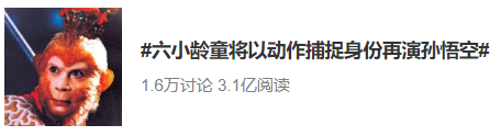 比如3年前关于六小龄童没能入选央视猴年春晚在微博的话题阅读量达到8亿,而近期六小龄童公布,将在电影《真假美猴王》中再演孙悟空,这个消息在微博也迅速登上热搜,目前话题阅读量超过了3亿。
