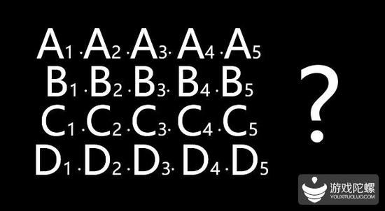 接下来讲一下我们早期材质编辑的思路。我们早期的思路叫ABCD组合法,任意组合可以得到11种变化可能性,但是每个字母都有5个变种的话,可以得到625种变化可能性。