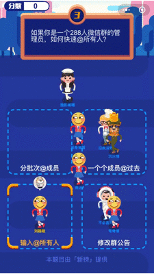 体验下来,《微信期末考》目前的题目基本与微信功能有关,比如“微信收藏暂时无法收藏哪一类信息?”“如果你是一个288人微信群的管理员,如何快速@所有人?”等等,覆盖的领域和每个人息息相关,但回答起来难度也有不小。未来,游戏会延伸出更多行业的题目内容还是个未知数。
