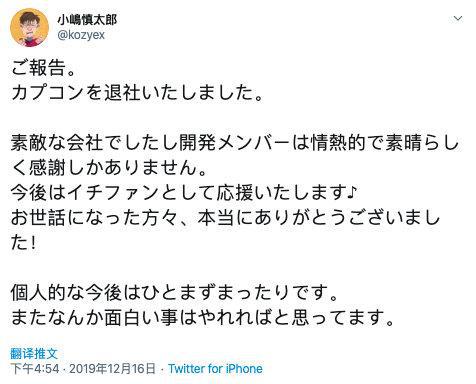 推文中,小嶋慎太郎称赞卡普空是一家优秀的公司、并对公司表达了自己的谢意,同时也表示将以粉丝的身份继续支持卡普空。至于他自己接下来的去向,小嶋慎太郎并没有言明,只谈到要先休息一阵,以后还想做一些有趣的事。