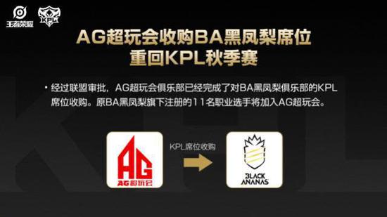 不过通过资本收购,AG超玩会得以重回KPL。今年8月,他们完成对BA黑凤梨的席位收购,时隔386天重回KPL赛场,并拿下了一座冠军奖杯。