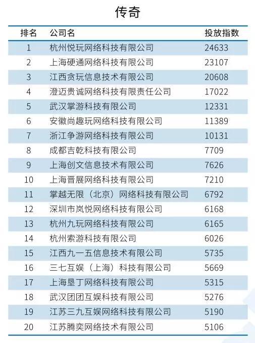 游戏题材TOP20:整体马太效应明显,传奇类贪玩投放指数排第3