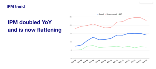 IPM在2019年底开始趋于平缓(来源:ironSource Gamefest 2019)