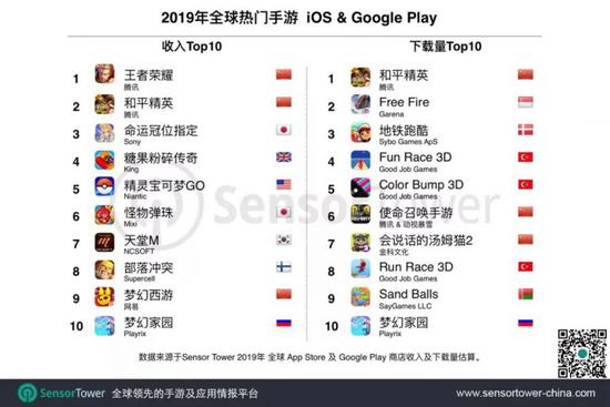 2019年,腾讯两款手游包揽全球手游畅销榜第1和第2名。其中,《王者荣耀》及海外版本全球预估收入超过14.8亿美元,已连续两年获得全球手游收入冠军。