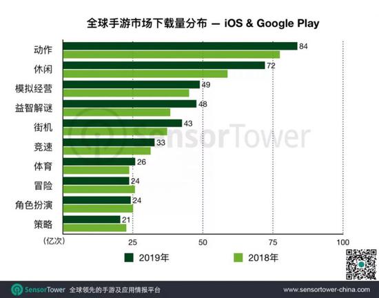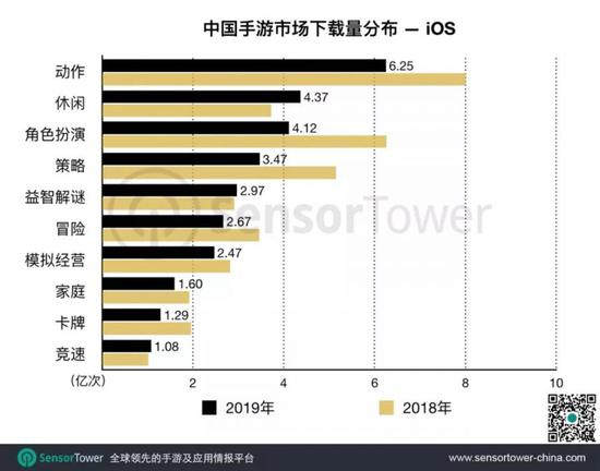 不过,在增速方面,休闲游戏和益智解谜领先于其它品类,分别达到22%和26%,动作游戏为7.7%。