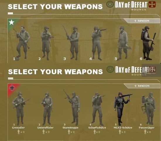 《胜利之日:起源》为了平衡性将兵种(武器)改为完全对应的各6个