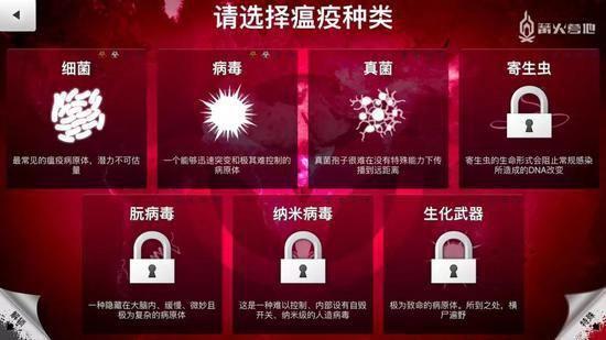 游戏《瘟疫公司》《瘟疫公司》实际上是一款以传染疾病为题材的策略游戏,这款游戏由英国独立游戏工作室Ndemic Creations开发,初版最早于2012年在App Store发布,距今已经有8个年头。在游戏中,玩家需要将选定的病原体散布到世界各地,制造出一场超级瘟疫。在病原体被传播和人类逐渐受到感染的过程中,玩家必须使出浑身解数不断扩大病毒的感染范围并且增强病毒的抵抗力,以应对来自世界各国政府及科学家们的反击措施,比如一些国家除了研发解药,还会在后期给市民派发口罩、分发瓶装水并采取严禁运输家畜等举措来防止疫情的进一步扩散,而你必须在解药研究出来之前杀死所有人才能取得胜利。
