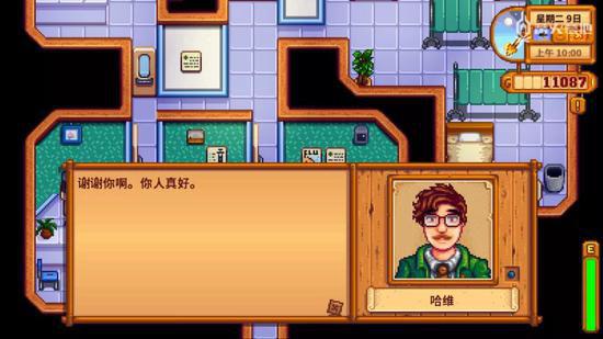 “谢谢你啊,你人真好。”等我把上好的鸡蛋送到了哈维医生的手中后,我又随即转身去找其他的NPC,给他们送上喜好的东西,“这东西好酷!谢谢你啊。”亚历克斯接过东西后笑的特别灿烂,“大雨阻止不了我完成工作!”罗宾收到土豆后也干劲十足。