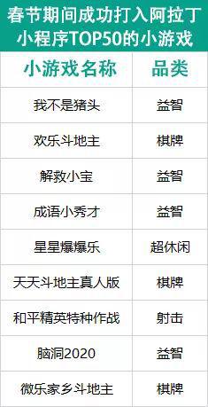 而在春节假期两周内,打入小程序榜单TOP50的小游戏合共有9款,数量出现了明显的增长,而且在这9款小游戏中,棋牌类有3款,益智类有4款,超休闲以及其他品类各有1款。