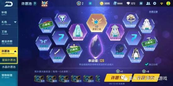 许愿池玩法要早于魔法衣橱推出,其实它玩法和魔法衣橱区别不大,由于不是直接奖励一套衣服,所以许愿池增加了每周重置的次数奖励,5次10次30次60次等等都有额外的奖励。