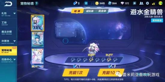 宠物抽取的玩法其实和工坊很相似,也是抽卡额外触发格子,但是宠物胚子的价值不高,所以这里采用的是一种激进式的激发用户付费能力的方式。当玩家格子累计到BUFF格子的时候,会触发几种随机BUFF,比如2小时内格子触发概率增加等等,通过这样的方式快速激发用户付费能力,同样也是利用了厌恶损失的心理。