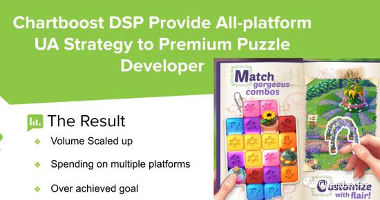 第三个案例是欧洲知名的Puzzle游戏开发者,在对接Chartboost DSP并开通全平台投放后,在测试期就已经完成了广告主的优化目标。