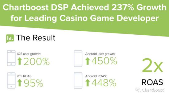 Chartboost DSP基于两年的Beta版本,目前在Social casino和以IAP为导向的Puzzle品类取得了很好的成绩。这两个品类的共同点是产品周期长,以内购为主要变现模式,目标地区以欧美发达国家为主。
