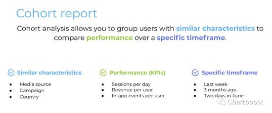 AppsFlyer客户成功经理杨自然为我们详细介绍了广告投放效果分析工具 Cohort Report(群组报告),群组分析是分析某些具有相似特点的用户在特定时间段的系列表现,相似特点指的是来自同一个渠道、广告活动或地区,表现或KPI是指用户打开App情况,收益情况或其他打点事件,特定时间段可以是几天到几个月。