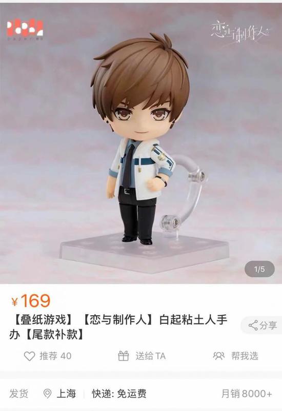在游戏周边及手办市场上,女性玩家一直都有积极鲜明的购买意愿,以近年的女性向爆款《恋与制作人》为例,尽管该作的市场热度较2018年的鼎盛时期已经下滑了不少,但GameRes观察其当下淘宝官方店的手办销量,发现售价169元的“白起粘土人手办”近30日的月销量依然高达8000+。