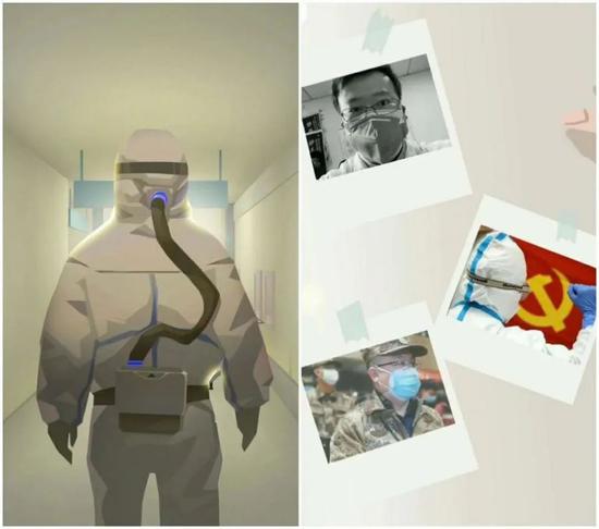 为了致敬李文亮医生,游戏中特意设计了手枪腿的彩蛋。而在游戏的最后,屏幕上闪过了很多照片——有把非典防护服拿出来穿的护士,有支援一线的军医。