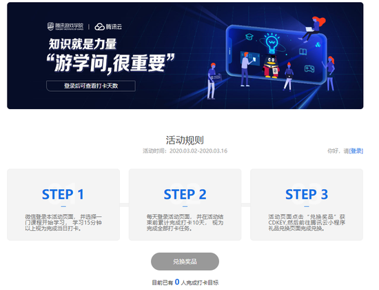 正所谓“知识就是力量”,本次线上课程活动以“游学问,很重要”为主题,围绕“产品”和“技术”两个侧重点,为大家带来深入浅出的专业课程内容。在活动期间,大家可以微信登录本活动页面, 并选择一门自己感兴趣的课程开始学习, 学习15分钟以上视为完成当日打卡;每天登录活动页面, 并在活动结束前累计完成打卡10天,视为完成全部打卡任务;在打卡满10天之后,可以在活动页面点击“兑换奖品”获CDKEY,然后前往腾讯云小程序礼品兑换页面完成兑换,即可领取腾讯视频VIP年卡。