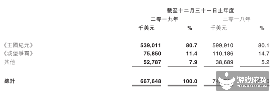 全年营收方面,2019年《王国纪元》累计创收约5.39亿美元,占比集团总收入的80.7%。《城堡争霸》全年累计收入7585万美元,占比总收入的11.4%。