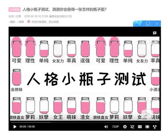 (1)测试型,代表就是很火的瓶子测试、电影人物测试、历史人物测试,这种视频的互动只是一个很简单的玩法而已,更像是以前常见的各种知识测试小游戏。