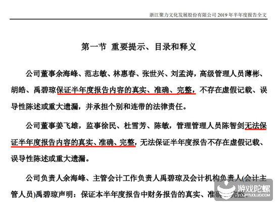 此事件后,聚力文化半年报还出现了两段南辕北辙的声明。