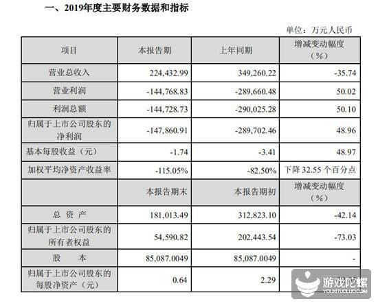 到了2019年,聚力文化的危机并未解除。其移动单机游戏、移动网络游戏、广告推广、建筑材料四大业务收入和毛利率全面下滑。其中,移动单机游戏以及移动网络游戏业务基本停滞。据聚力文化2019年业绩快报,公司营收22.44亿元,同比下降35.74%,净亏损14.79亿元,同比减亏48.96%。减亏的因素或是计提的商誉减值比2018年有所减少。