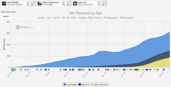从Sensor Tower的数据对比来看,这三款游戏过去几个月一直呈现增长趋势,龙创悦动的《守望黎明》增至第8名,壳木游戏的《Age of Z》跻身第28名,FunPlus的《State of Survival》则比1月份增长9个名次至第16名。而且三款游戏的海外总收入较去年同期增长182.6%。市场布局方面,龙创悦动的《守望黎明》和壳木软件的《Age of Z》主要收入来自美日韩三个市场,而FunPlus的《State of Survival》收入则主要来自欧美玩家的贡献。