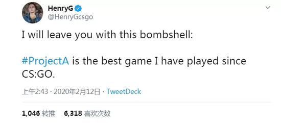 在消息公布的同时,拳头还找来了不少国外的知名主播为自家的游戏测试,这也算是一种宣传的手段。比如,《CS:GO》国外知名解说HenryG在官方邀请下,率先体验了《Valorant》,并且发推对游戏的质量做出了很高的评价:“《Valorant》是我在《CS:GO》后玩到的最好的游戏。”