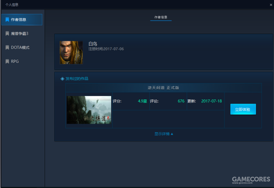 这种流量变现的方式,让玩家、平台、作者三分都非常满意,整个平台也越走越顺,出现了许多品质出色的地图,包括《DOTA循环圈》、《战三国》等。也正是在这期间,白鸟回来了,他在官方平台进行了作者注册,更新了老图,并在粉丝群里说会继续更新。