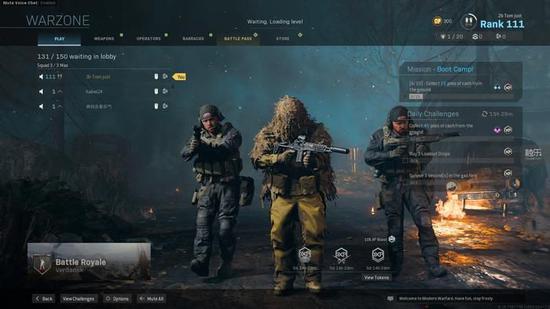 第二个隐忧则更加现实——玩家等级的不对等。在“战区”里,已经购买了《使命召唤:现代战争》的老玩家,将直接与这些玩家的多人游戏与合作模式共享进度。老玩家一进入游戏就挂着金光闪闪的100多级的徽标,解锁了很多游戏中的武器、属性和配件。这些东西都可以通过不同的方式在“战区”模式中直接拿来使用,这对于刚加入的新手来说很不友好。