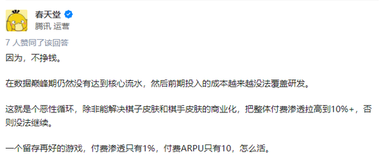1。 最明显的就是变现困难。混迹国内游戏圈子这么多年,大家难道不知道以上3点会出现的问题吗?肯定是知道的,就是来赚一波快钱的。但谁也没想到,自走棋这行当赚不了快钱。。。。就拿头部的《多多自走棋》来说,根据知乎一名腾讯运营所透露的数据,其付费渗透率只有1%,ARPU(平均每用户收入)只有10。就算是和之前腾讯副总裁姚晓光所说的,不影响生活健康的付费渗透率6.5%相比,都相差太远。和动作、棋牌、RPG、SLG动辄几十美元的ARPU相比,有着天壤之别。