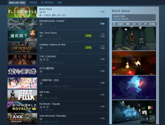 上线不久,《黑山》就进入到Steam全球热销榜Top 10,并且在“新品与热门商品”榜单登顶。26000多条评价的好评率为95%,又一款“好评如潮”的重制作品。
