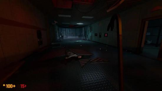 尽管对《半条命》的故事背景有所耳闻。但是实验意外发生后,主角走出实验室发现外面一片狼藉,像恐怖片一样的场景还是很有冲击力。灯光昏暗、堆满建筑残骸的走廊里,倒下的科学家以及变异成怪物的NPC,再加上警报鸣笛声的背景。即便游戏的画面并不精致,这段营造出的氛围还是让人有脊背发凉的感觉。当然,我并不是很清楚这应该更多地归功于《半条命》原版的背景设置,还是《黑山》在此基础上的优化打磨。