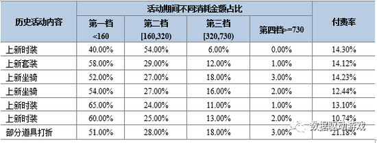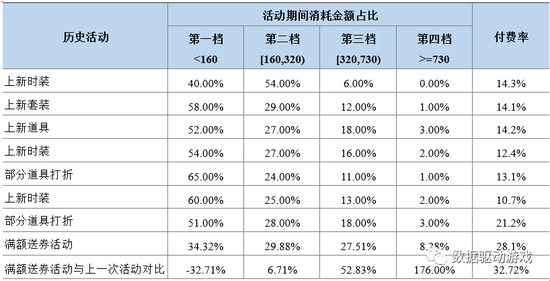 与历史活动相比,高额消耗的用户数明显增加,整体付费率明显提升(见表4)。
