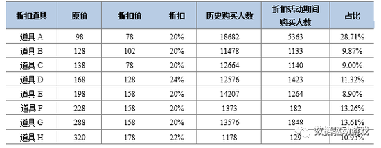 因历史的商城活动中做过部分道具打折活动,所以先求出8折折扣道具的购买人数占该道具历史购买人数的比例,将该比例作为本次活动道具的购买人数。
