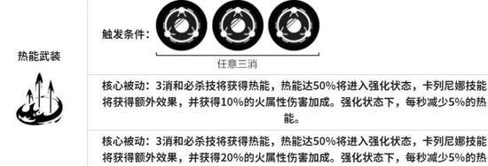 主要角色的核心战斗机制来源于其被动:某颜色三消+X,X可为空①。