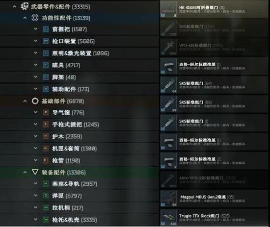枪械系统是游戏的一大特色,41种武器大类却有30000+的武器零件&配件;