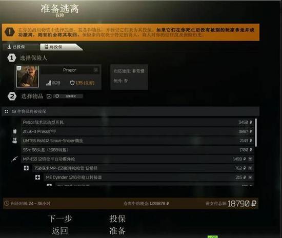 部分商人提供投保,会在一定时间后返还玩家未被拾取的装备