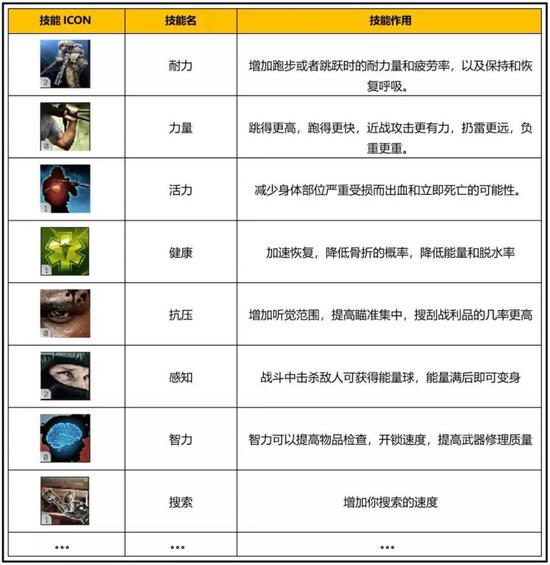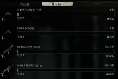 玩家拥有技能和专精两条成长线,使用PMC完成对局可获得提升,当前版本共有技能30种,武器专精41种;