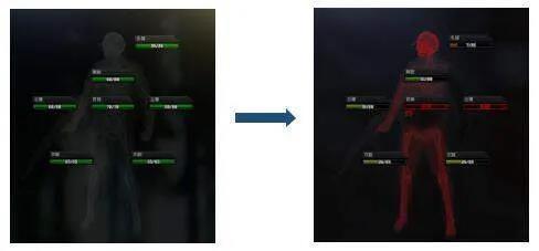 独立部位血量:头、胸、胃、四肢共7个人体部位,血量相互独立;