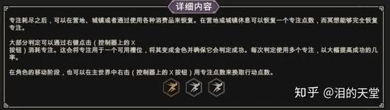 比如移动阶段专注点换取移动数,战斗时命中率、施法成功率、触发事件成功率、接触陷阱成功率等等,通过消耗专注点数便来增加胜算,消耗之后需要休息与冥想来恢复。这一系统使得游戏在注重随机带来可玩性的同时,又增加了一些策略要素。